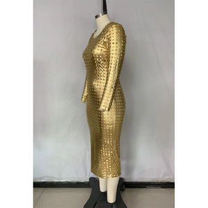 5XL Hollowed Out Cover Up Dress Round Neck Long Sleeve Ankle Length Plus Size Women